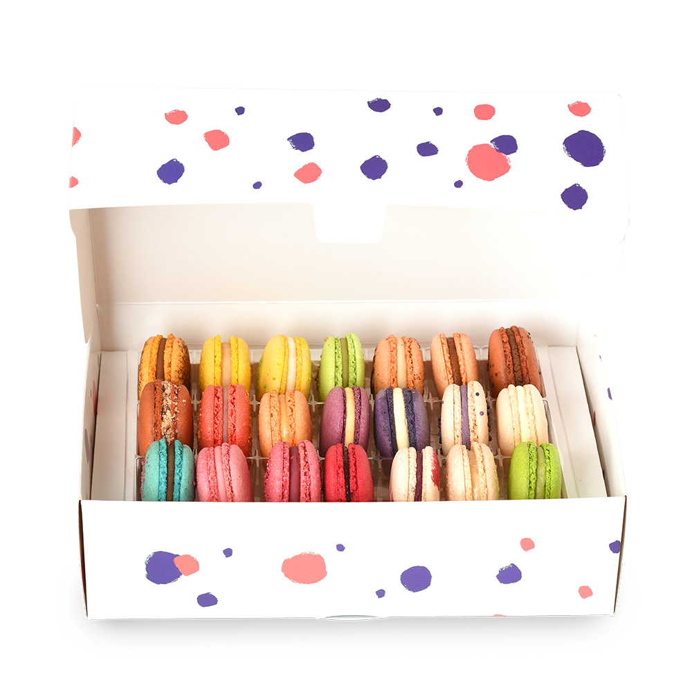 Кутия „21 Nuances“ е идеалното въведение в богатството на нашите вкусове. С 21 напълно различни макарона, тя предлага цялостен поглед върху нашето меню, без да се повтаря нито веднъж.